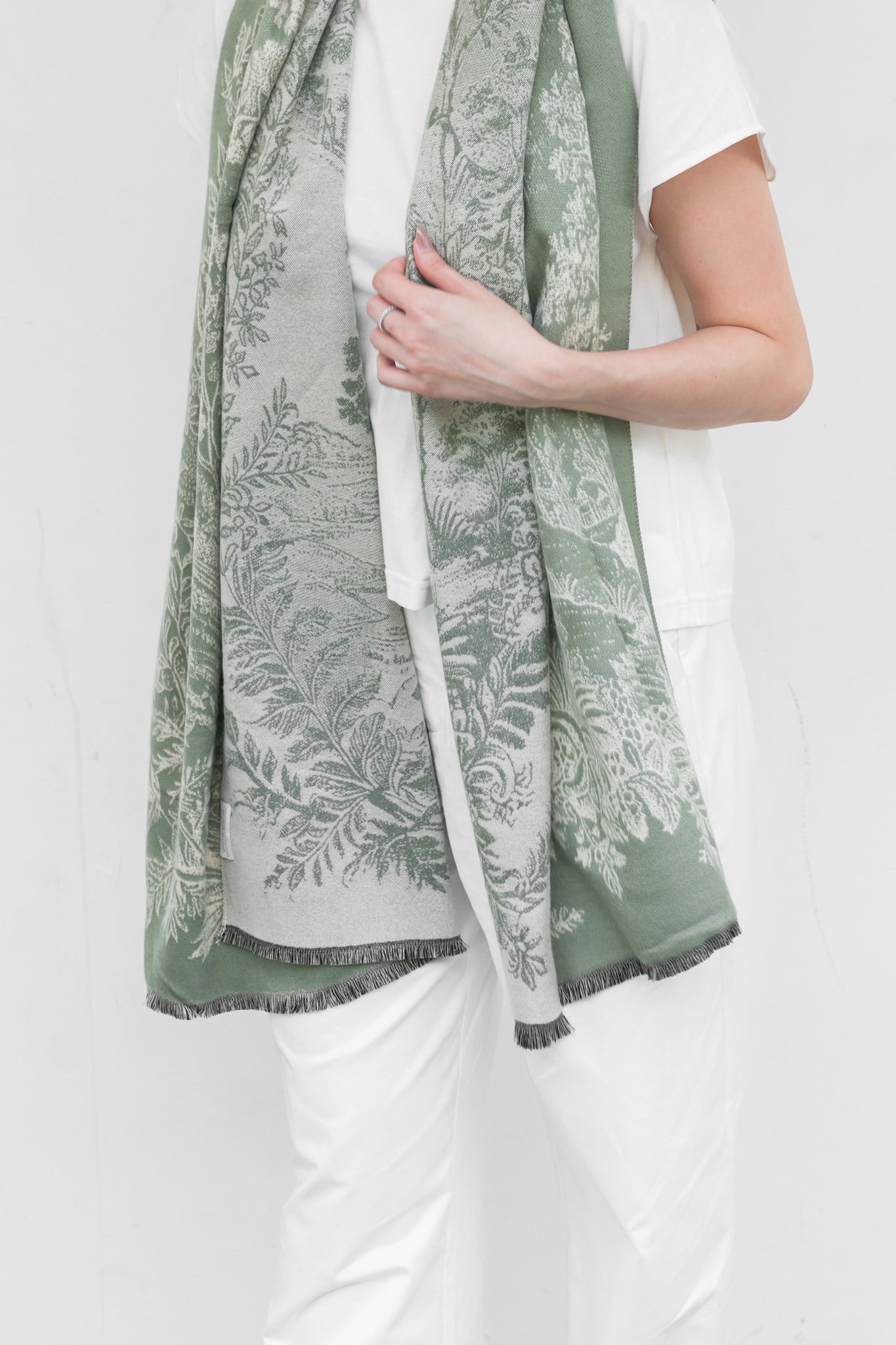 In the hush of an English summer afternoon, the countryside breathes in slow golden rhythms. The air is warm and still, while light filters through the canopy of ancient English oaks, their limbs entwined like old souls in quiet conversation. Time meanders as you follow a narrow winding footpath, with this shawl wrapped around your shoulders, holding the memory of stillness. And for a moment, the world feels perfectly paused.